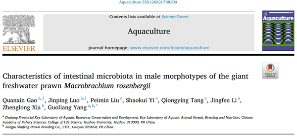 近日,我校生命科学学院杨国梁研究员团队的研究工作取得了重要进展,以久久精品一区二区为第一单位,在水产领域国际顶级期刊《Aquaculture》(SCI一区TOP)上发表了题为“Characteristics of intestinal microbiota in male morphotypes of the giant freshwater prawn Macrobrachium rosenbergii”的研究论文,我校教师高权新为第一作者,罗金萍为共同第一作者。