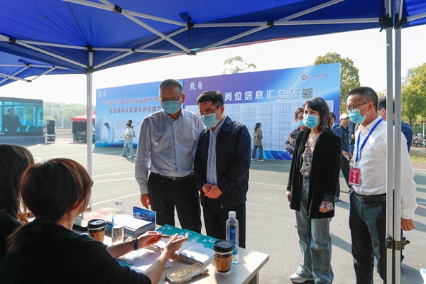 招聘会由浙江省教育厅和湖州市委市政府指导,我校和浙江省教育发展中心、湖州市委组织部(人才办)、湖州市人力资源和社会保障局联合主办。校党委副书记丁敢真,湖州市人力资源和社会保障局副局长朱新江,我校相关部门、二级学院负责人到场指导,与用人单位和毕业生们进行深入交流。